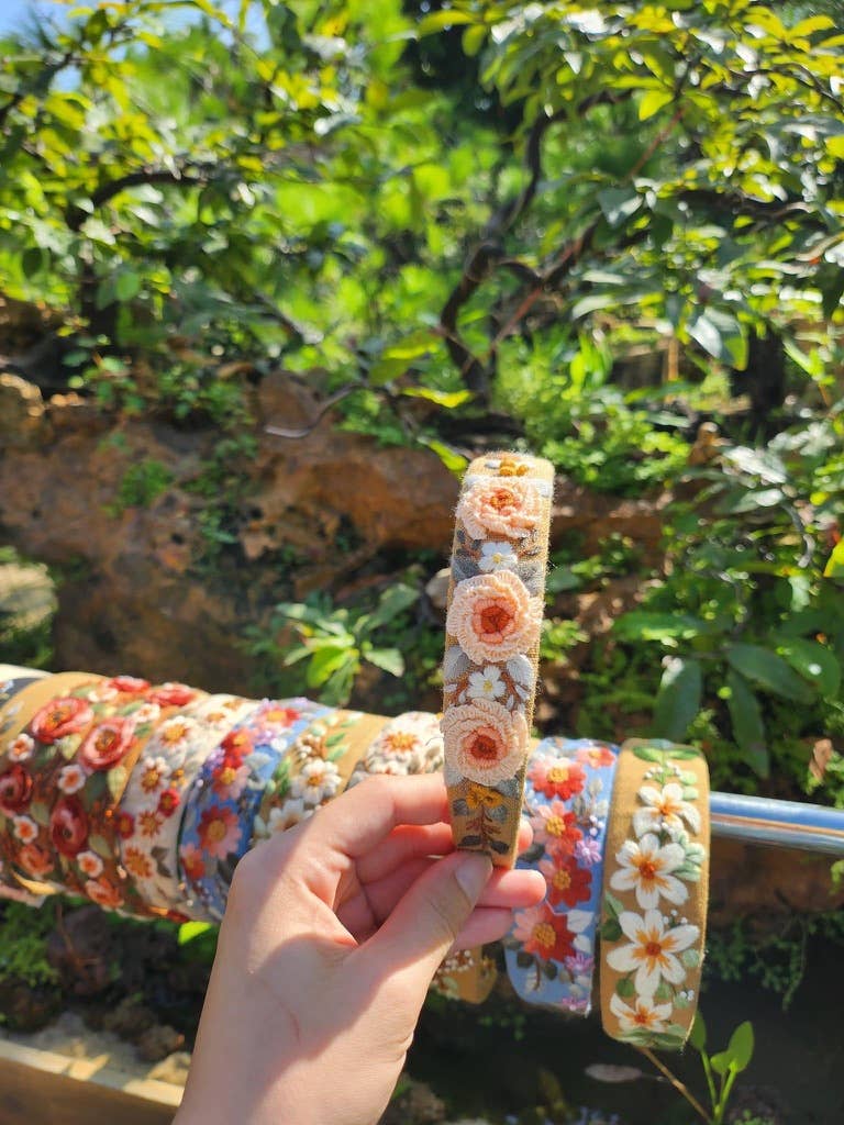 ★ Lovely Floral Embroidered Headband Turban ☆ Measurement: • Size: Band Width 1"" • Material: plastic headband inside, outside is wrapped with linen fabric. ☆ Feature: • This linen headband is carefully hand stitched with beautiful floral embroidery pattern, felted inside for comfort.