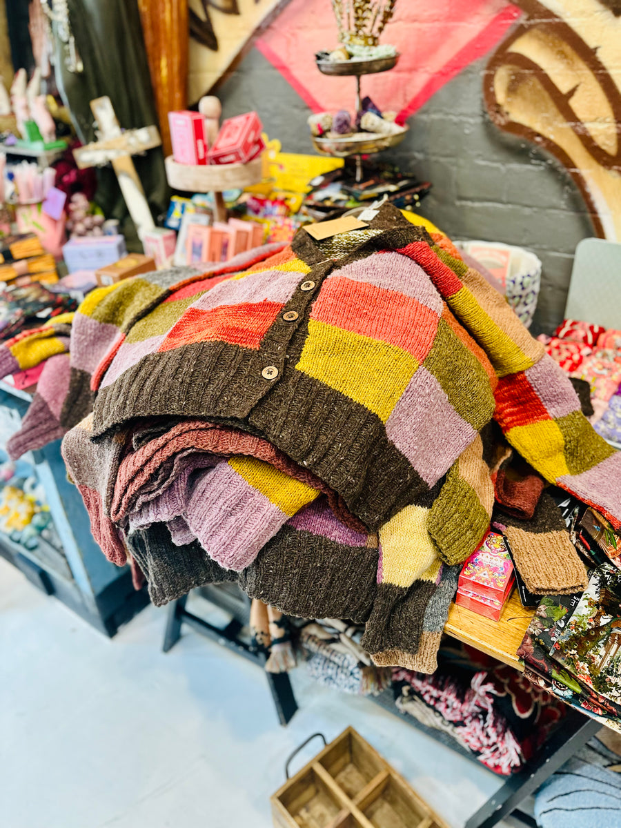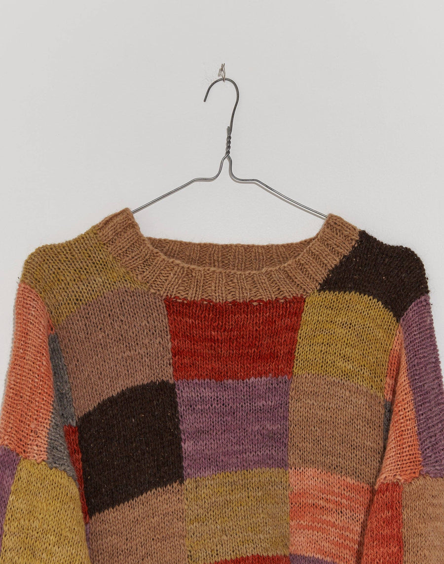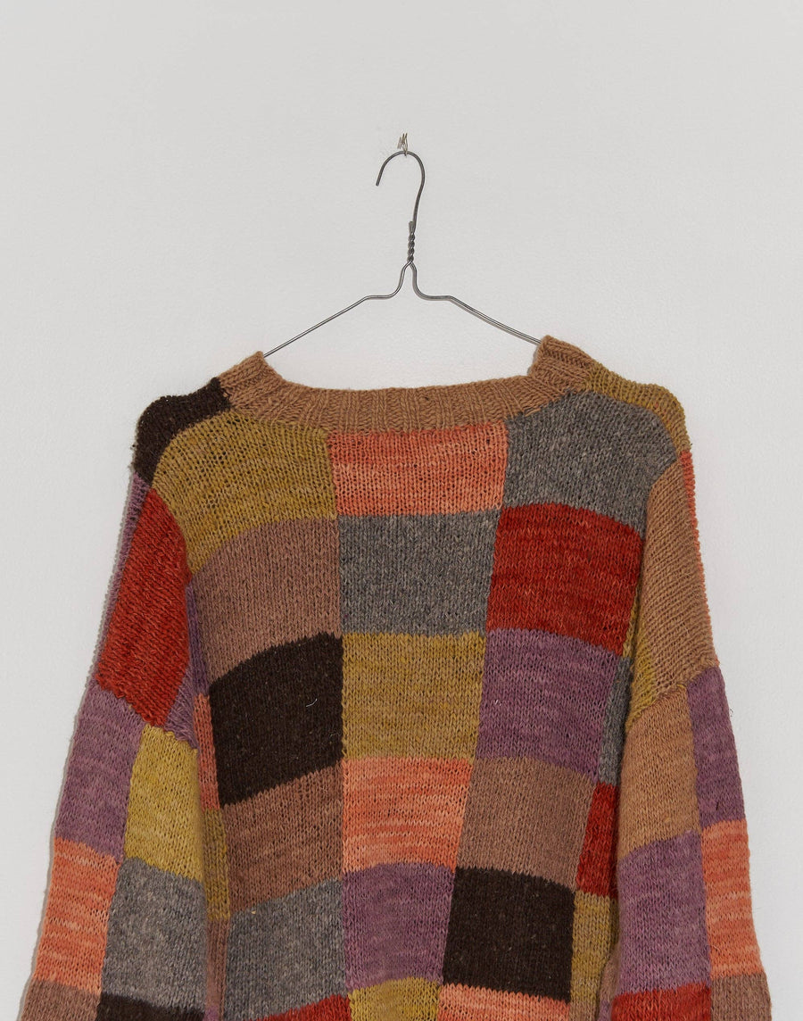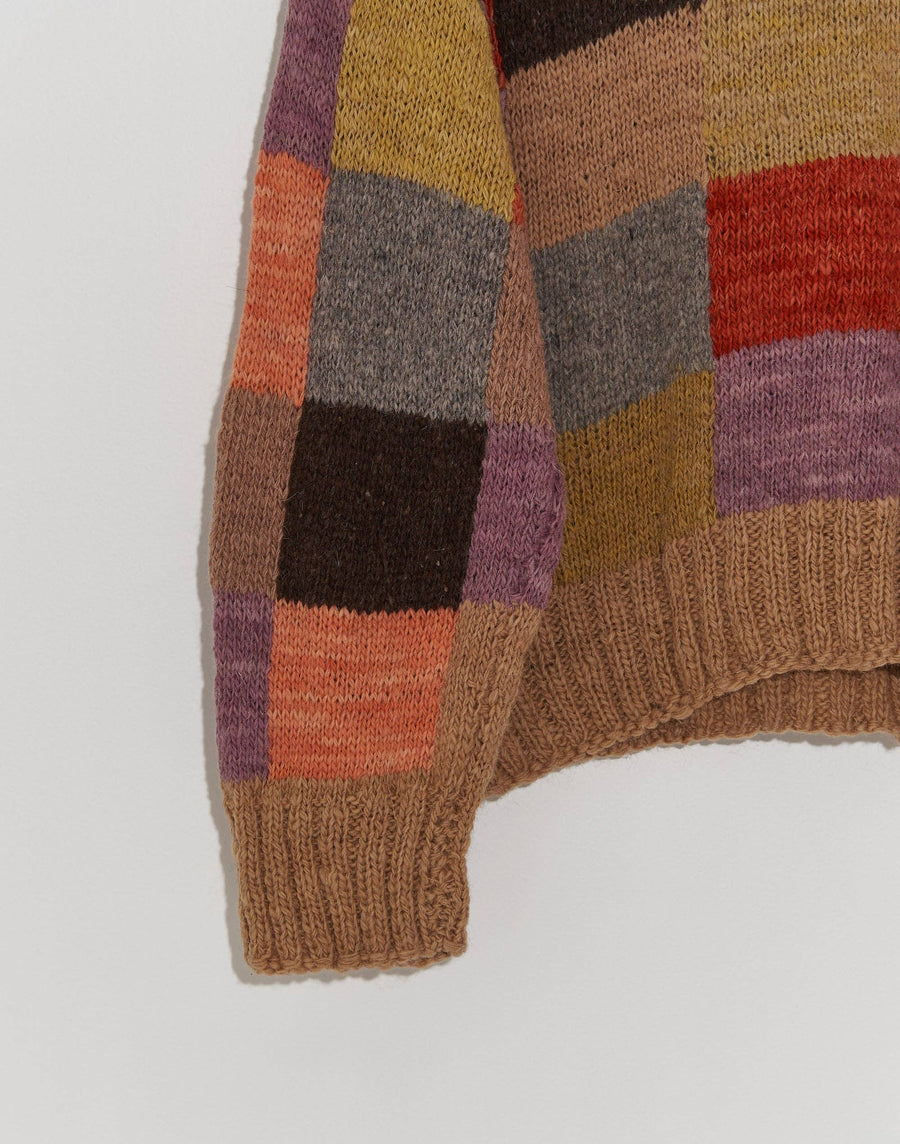Our peach color blocked sweater is beautifully crafted with upcycled naturally-dyed woollen yarn from our production. Each piece is unique and reminiscent of mountain landscapes - terraced fields, apple blossoms and snow capped peaks. Handspun and handknit by our women artisans, each piece is individual in design and colour.