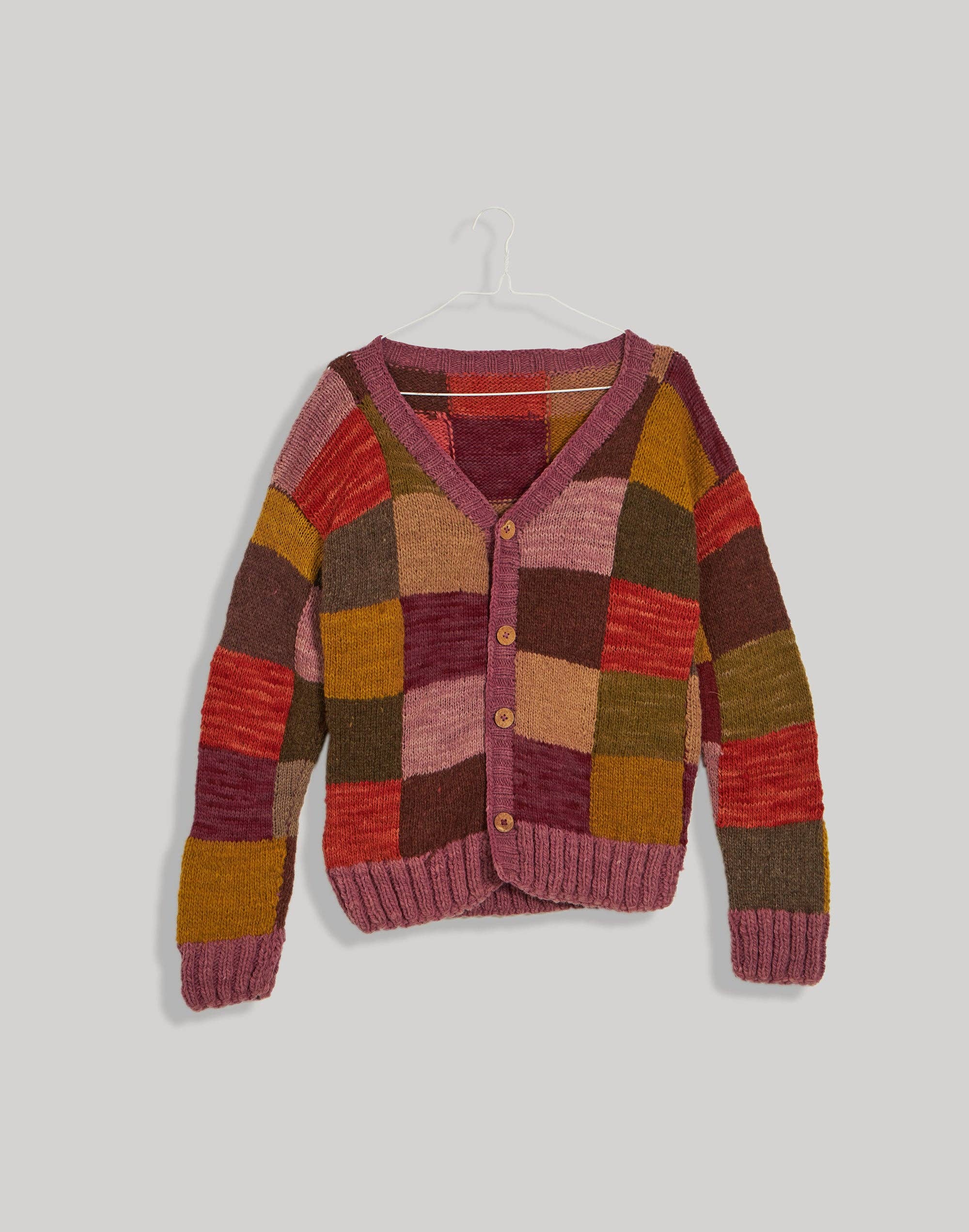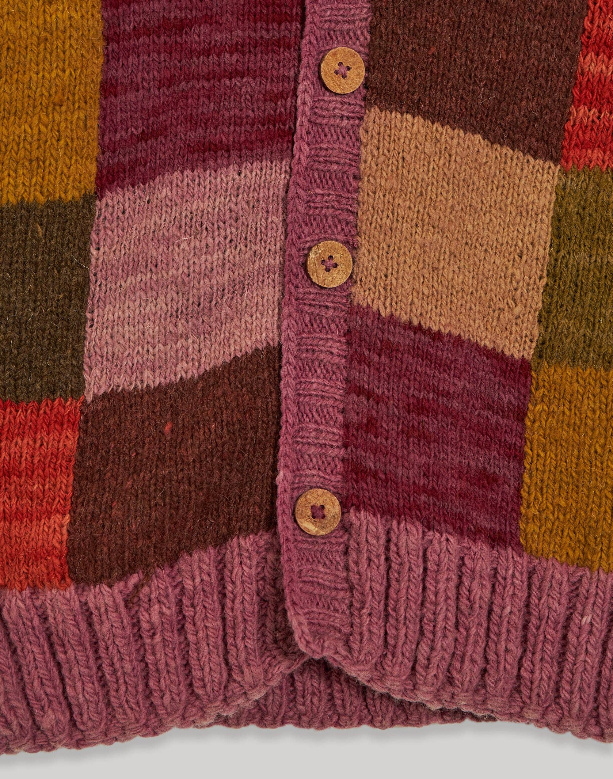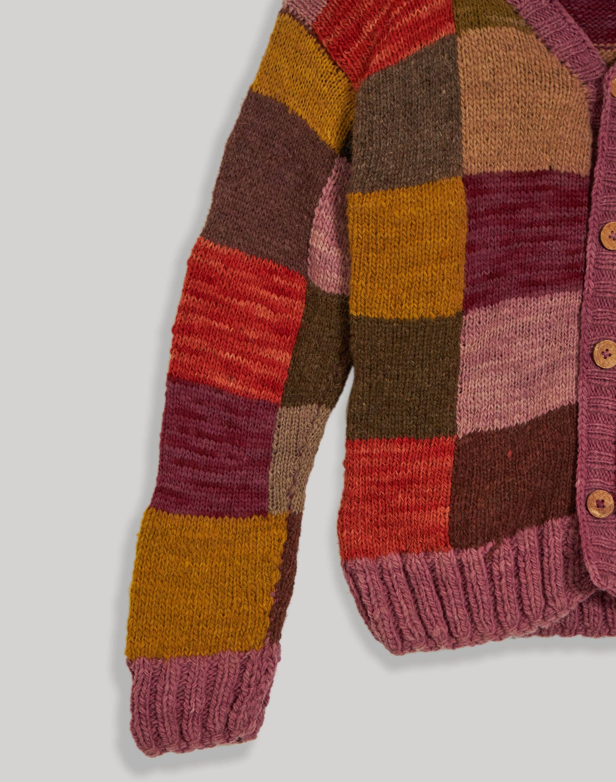This mosaic patchwork piece is skillfully crafted from upcycled, naturally-dyed woollen yarn sourced from our production.
