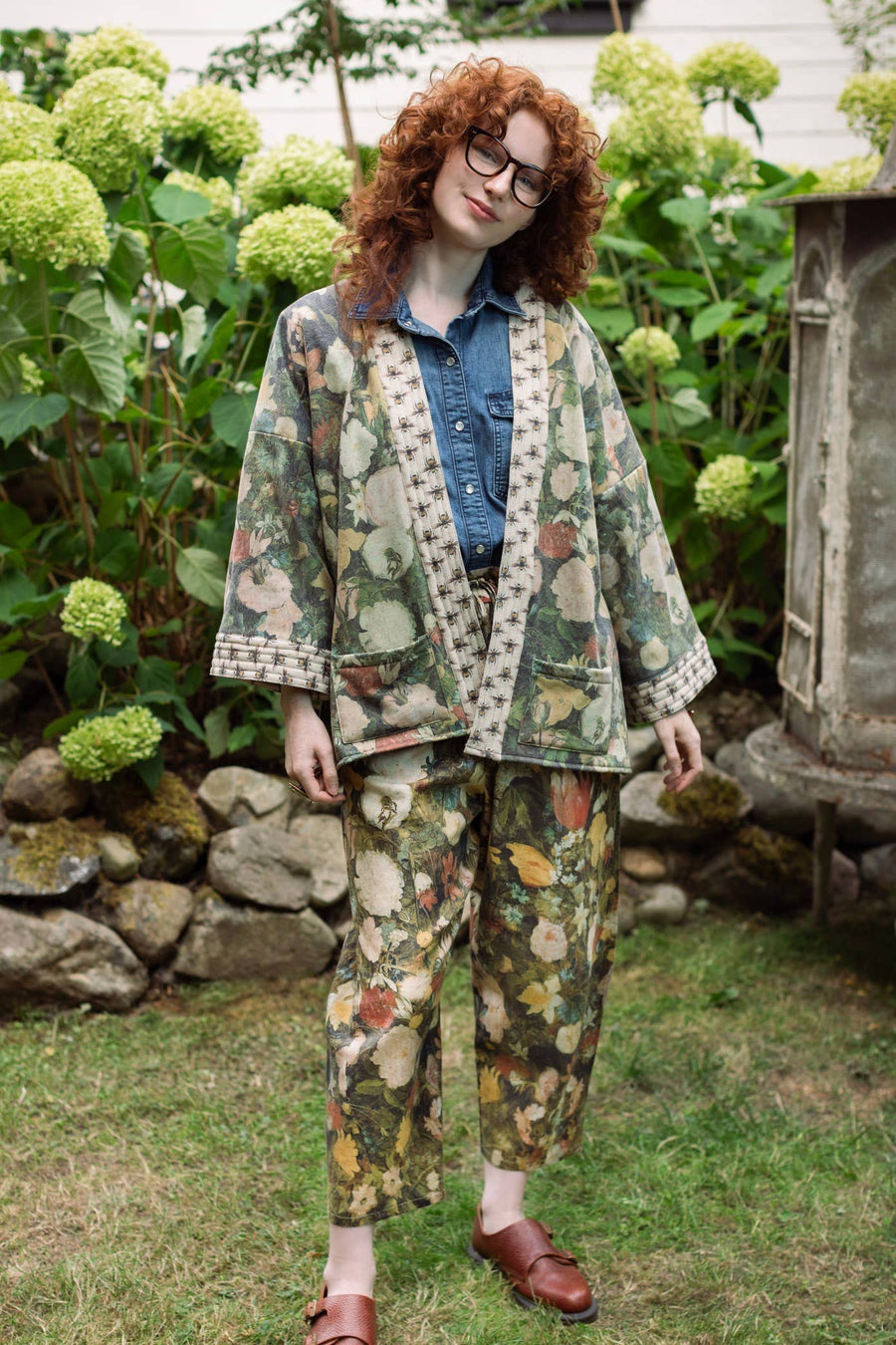 Inspired by the romance of European flower markets, we created the print using a masterful oil painting from the early 1600’s by artist Jan Brueghel, and an ink drawing of bumblebees we found in a Victorian encyclopedia. Dress them up with a silk tank & blazer, or down with a cropped sweater and sneakers— either way, expect compliments! For Approx. Measurements see Pant Diagrams in photos.