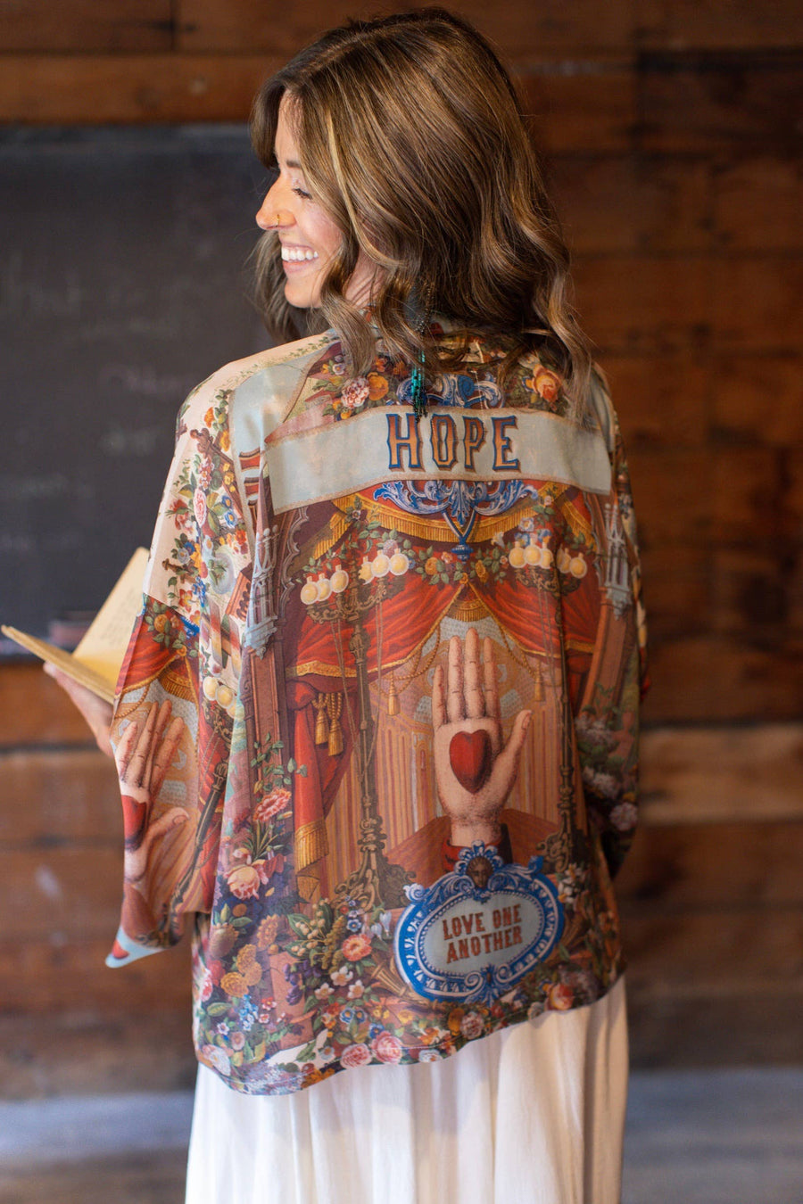 We reworked the images and added our own touches — including the heart-in-hand (the symbol for kindness and charity), and messages in historic fonts (“Love is the only gold” and “Love one another”) to complement the original hand-lettering.