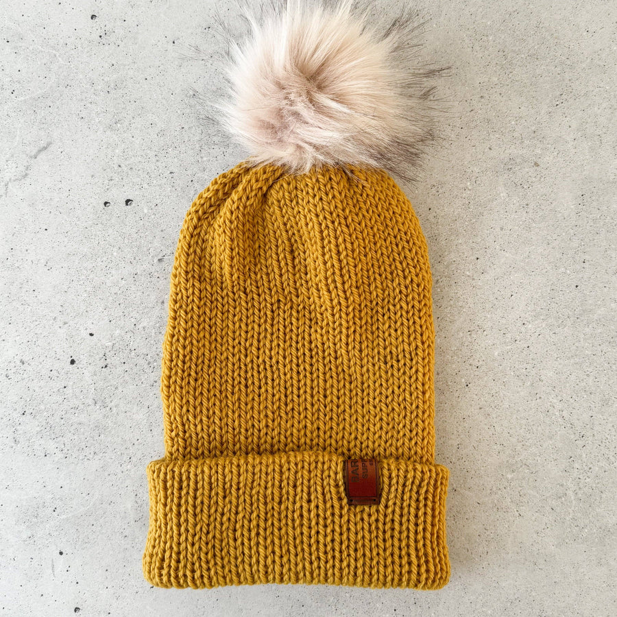 Our double knit pom pom beanie can be worn folded or unfolded for a more slouchy look.