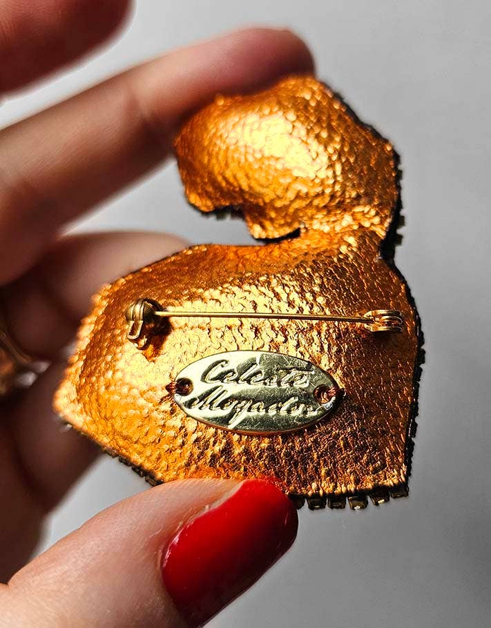 A brooch that instantly warms up your outfits with a unique and retro style. Size: 5.6 x 4.3 cm