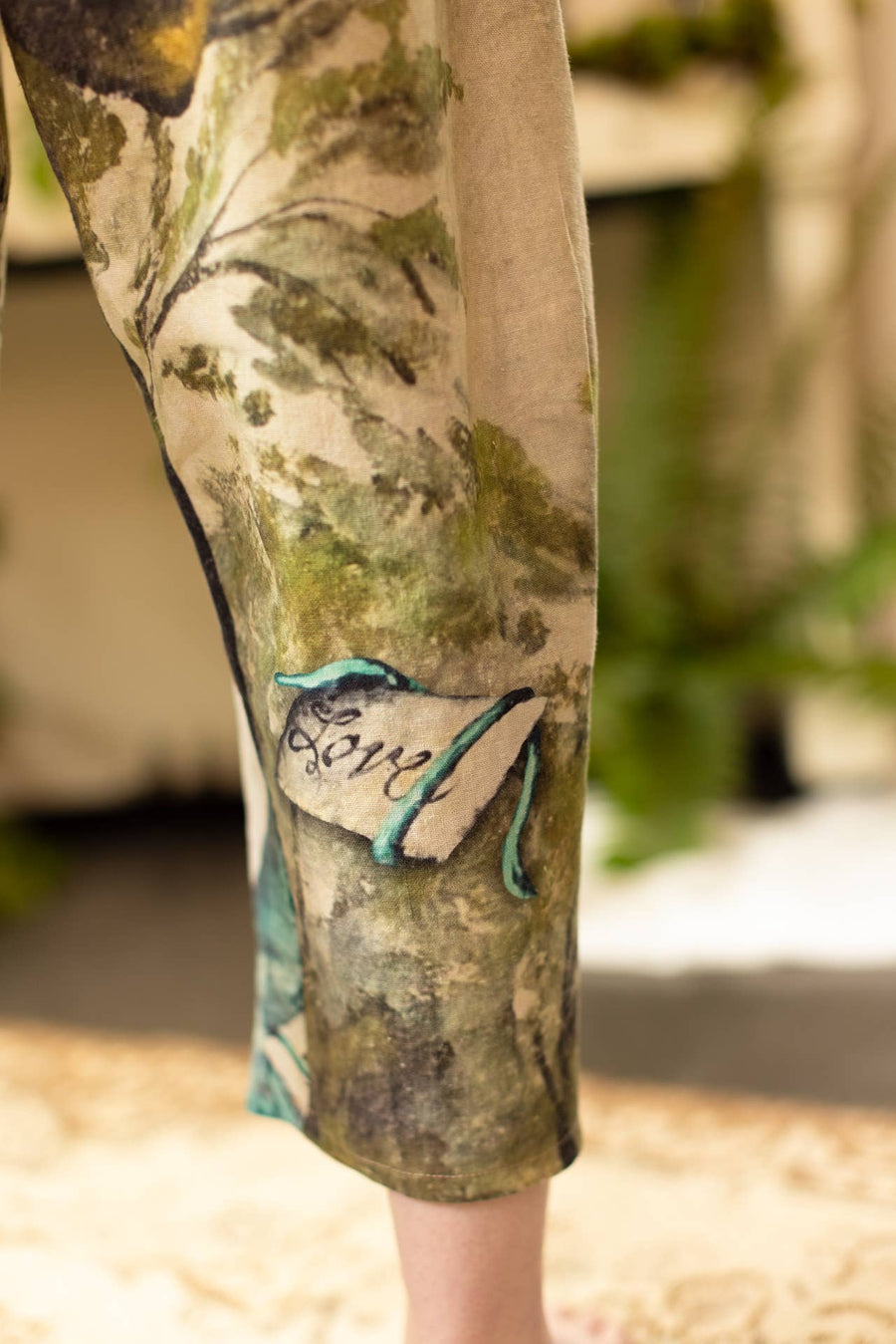 Our beautiful Artist Pants are made from a natural blend of linen and viscose, & feature a drawstring front, elastic waist back panel, pockets, cropped length, and a flattering lantern hem.