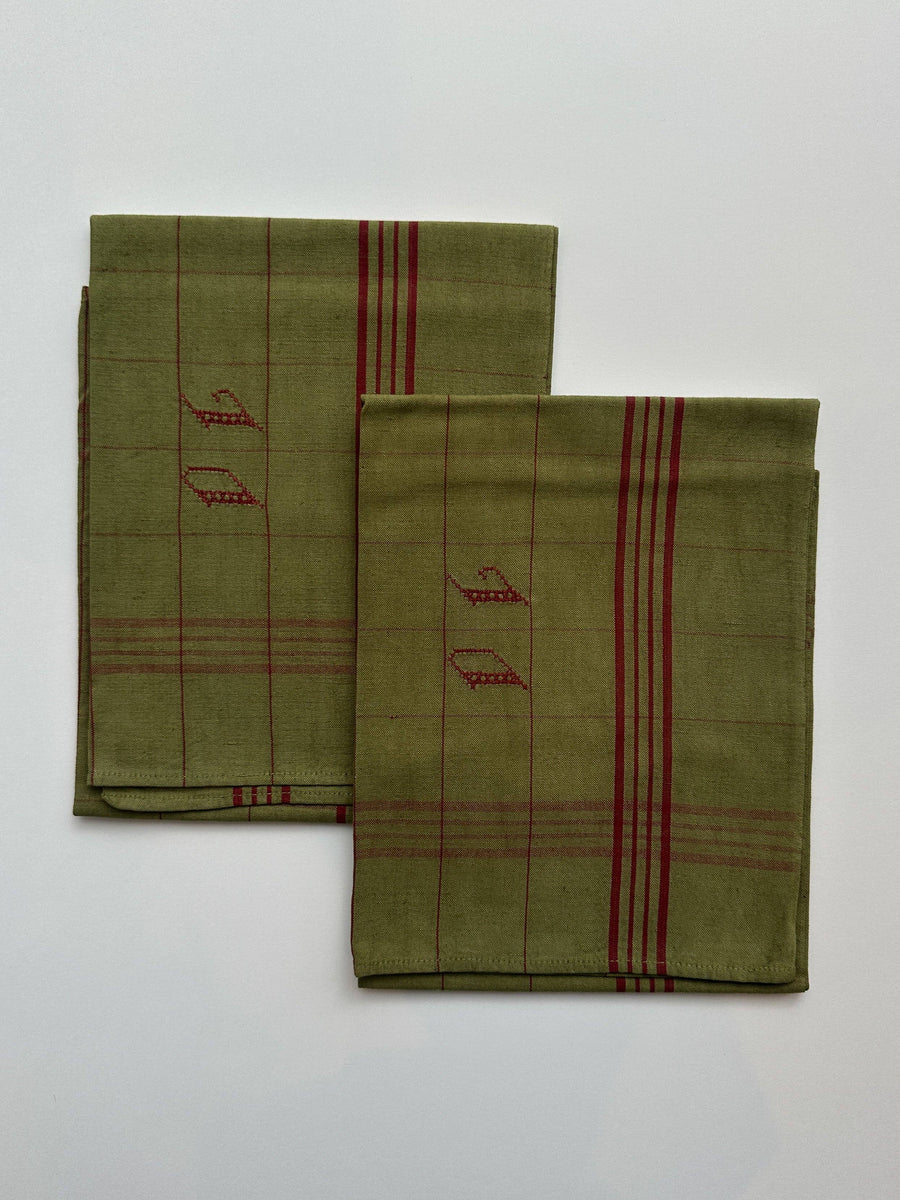 Carefully sourced, dyed, and restored in an artisanal manner in our workshop located in Lyon, our tea towels are meticulously cleaned, repaired, and refurbished to ensure their optimal quality. Each piece is unique or part of a small series, carrying the history and charm of the past. Our vintage tea towels are distinguished by their remarkable absorbency and exceptional durability, far surpassing the standards of modern tea towels.