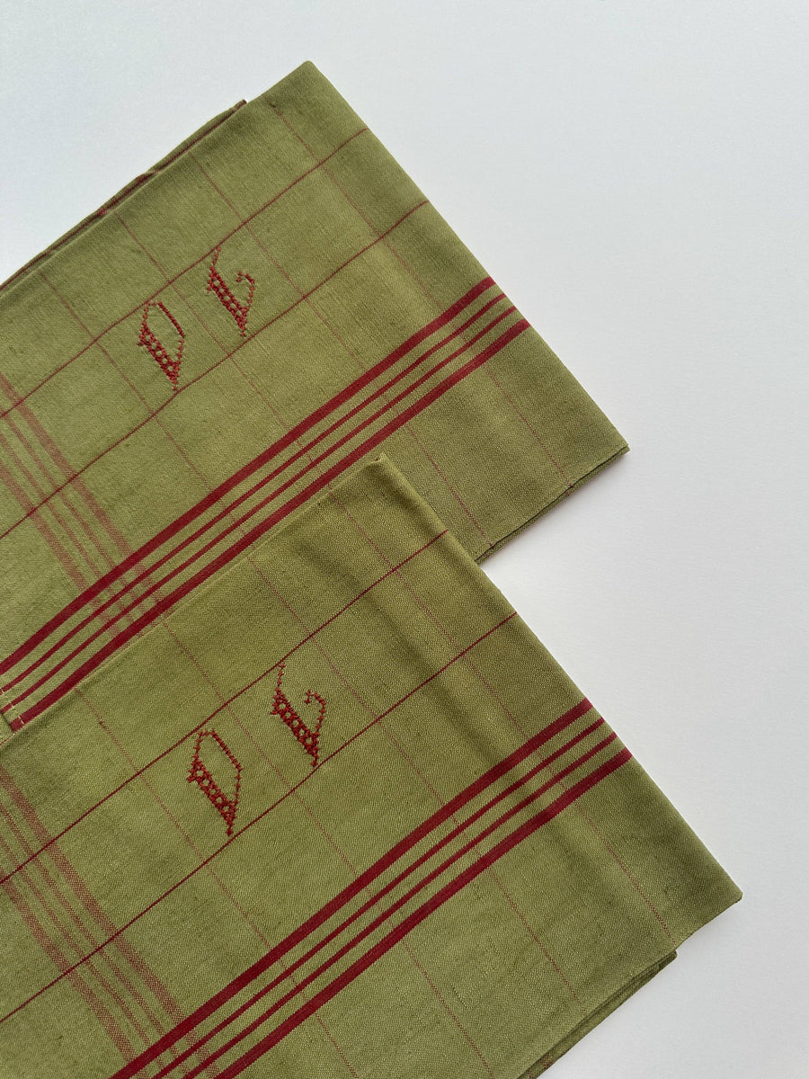 Vintage striped tea towel - Monogram DG - Khaki - Twitchers Emporium Store