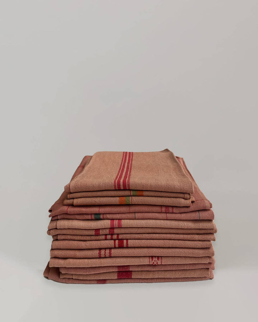 Carefully sourced, dyed, and restored in an artisanal manner in our workshop located in Lyon, France, our tea towels are meticulously cleaned, repaired, and refurbished to ensure their optimal quality. Each piece is unique or part of a small series, carrying the history and charm of the past.